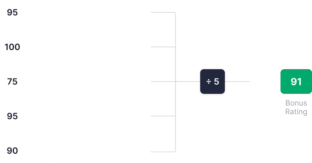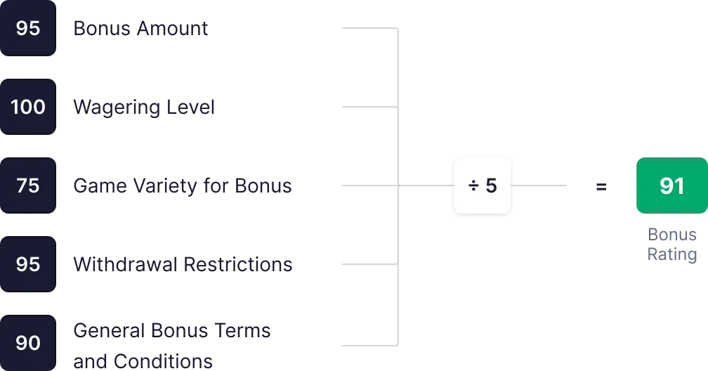 | Dacă cazinoul oferă bonusuri (de bun venit și exclusive fără depunere) cu cerințe peste medie. | 90 |