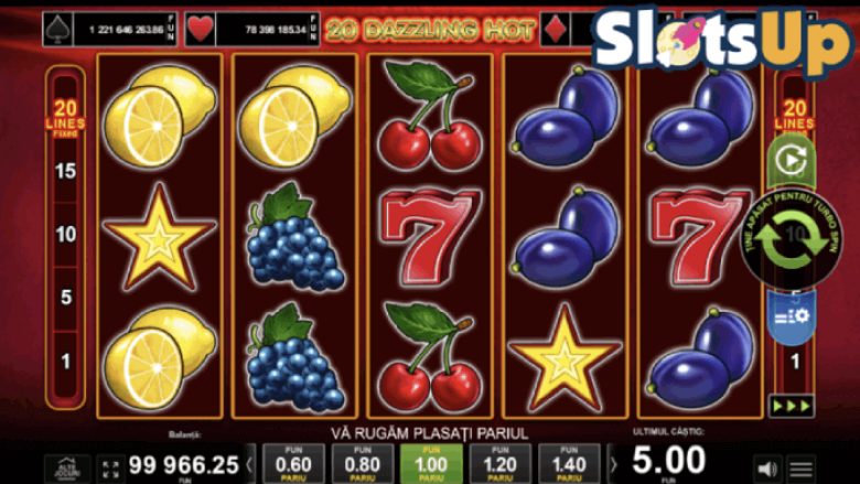 Miza minimă la 20 Dazzling Hot este 0.20 RON, în timp ce miza maximă care poate fi plasată este 100 RON.