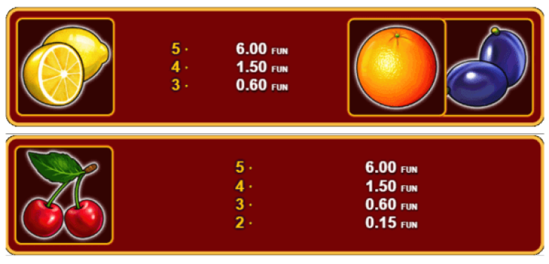 20 Dazzling Hot este un joc de păcănele cu fructe unde poți obține câștiguri de până la 1.000x distrându-te cu simboluri clasice precum prune, citrice, dar și șeptari și stele. Farmecul jocului constă tocmai în combinația dintre două elemente care au cucerit pasionații de păcănele vechi, respectiv tema fructelor și efectul de flăcări (Hot).
