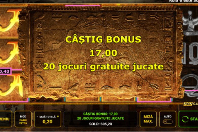 Rotiri Gratuite: se acordă de către Cartea lui Ra când obții cel puțin 3 Scatter pe ecran. În timpul rotirilor gratuite, poți primi și mai multe runde gratis dacă obții alte 3 Scatter.